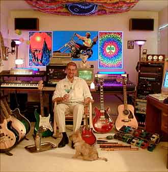 Maximus, our new puppy, sits at attention as I salute the proceedings. AT this point, I had just gotten my first DAW rig, and was making the transition from tape-based recording to full digital. In that rack is a Tascam 288 (eight tracks on cassette, and I lost one of those tracks to a SMPTE signal used to synchronize the DAW). This is the rig that I used to finish the resording of my first "Covers!" project, although some of the songs on that project dated back to Capitol Hill.